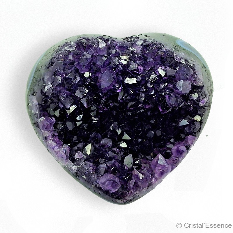 La forme en cœur est bien adaptée à l’énergie de l’Améthyste d’Uruguay et sublime la beauté et la qualité énergétique de cette variété d’Améthyste.