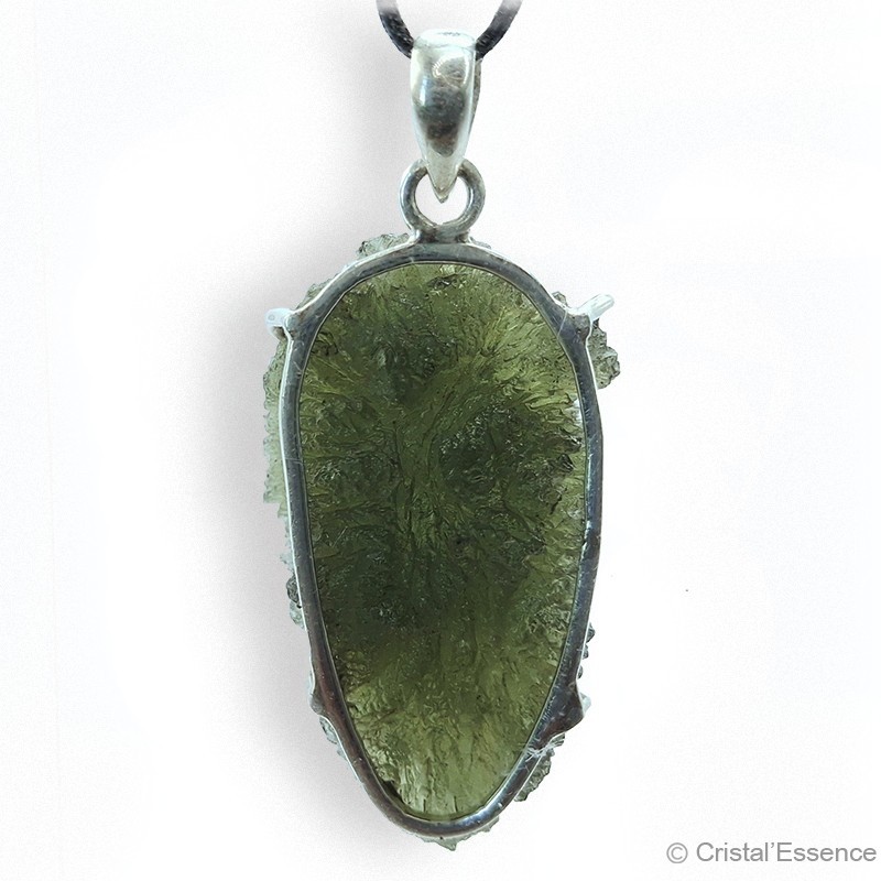 Moldavite spécimen exceptionnel entier brut, pendentif griffes argent, 11,49 g g