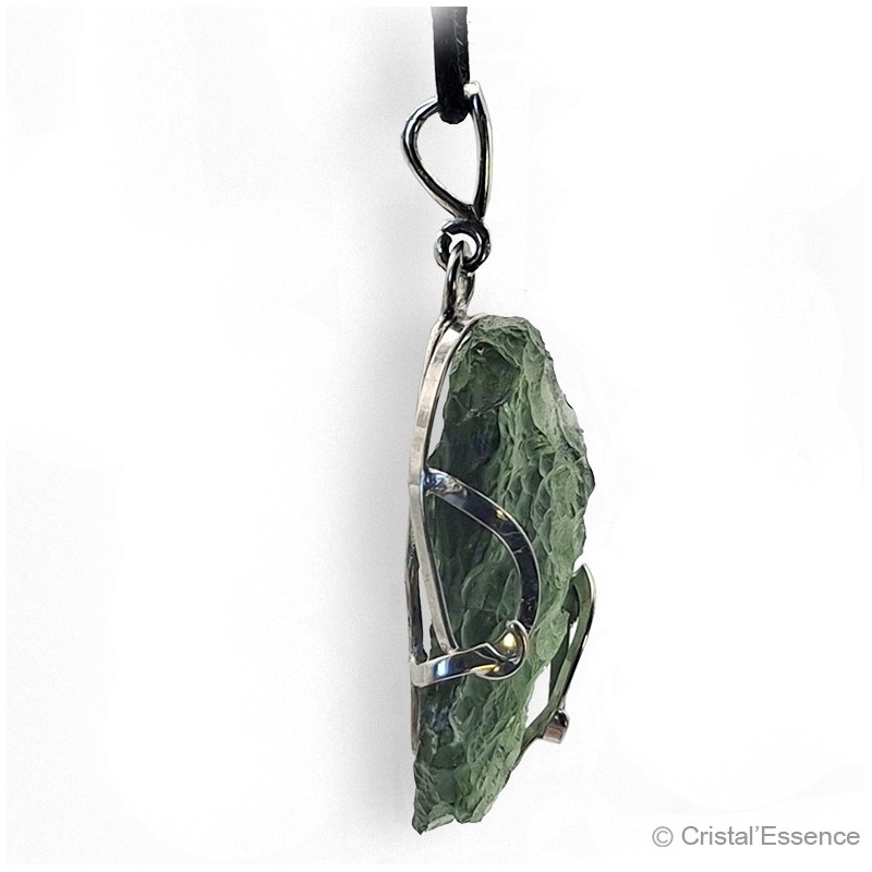Le port en pendentif est très adapté à la Moldavite car elle peut être ainsi portée au niveau du chakra correspondant, le chakra du cœur, pour bénéficier tout au long de la journée de ses qualités énergétiques. Ce pendentif est livré avec un cordon de coton noir.