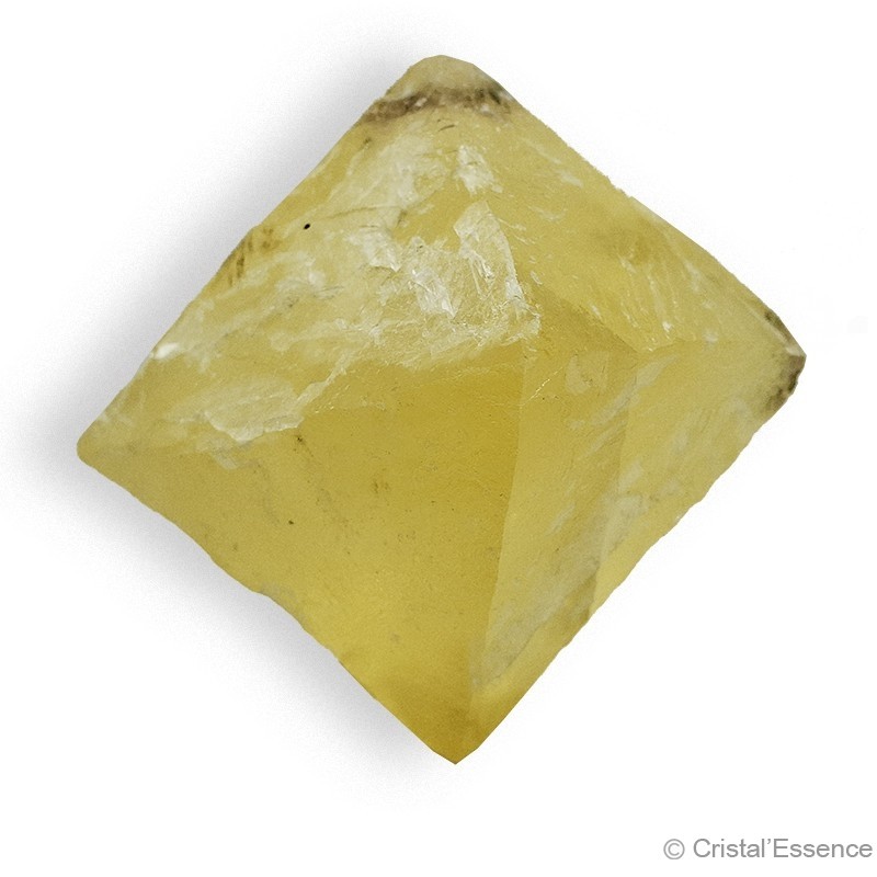 La forme cristallisée de cette Fluorite jaune est naturelle, la Fluorite présente ici un cristal octaédrique.